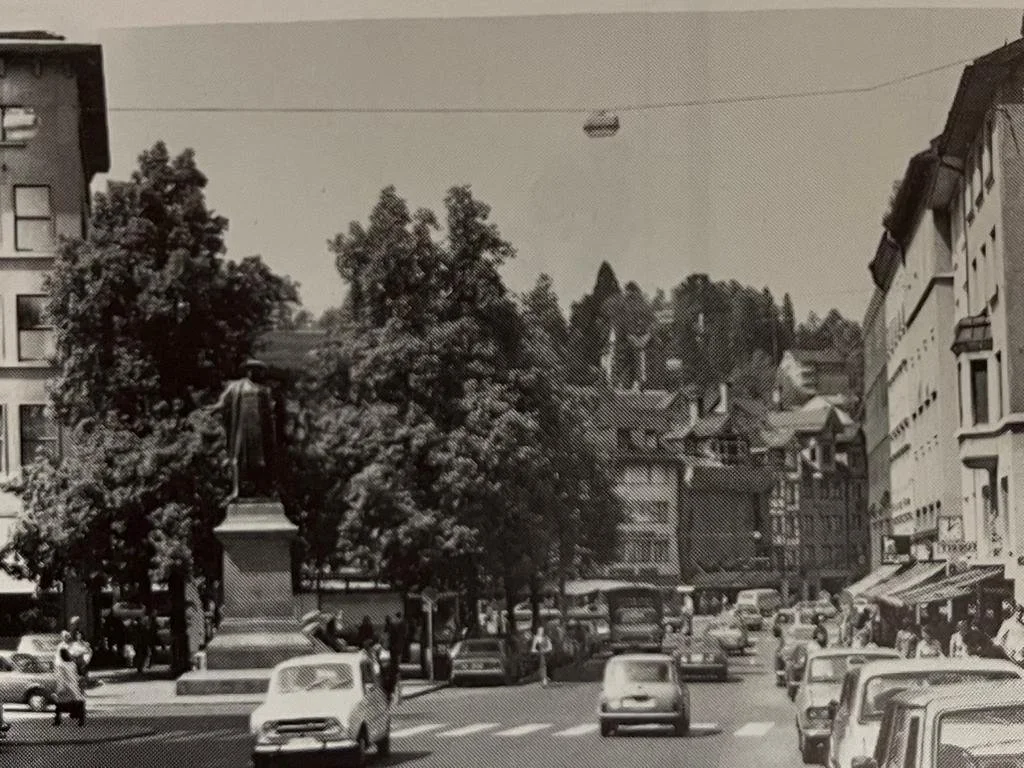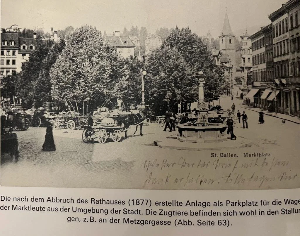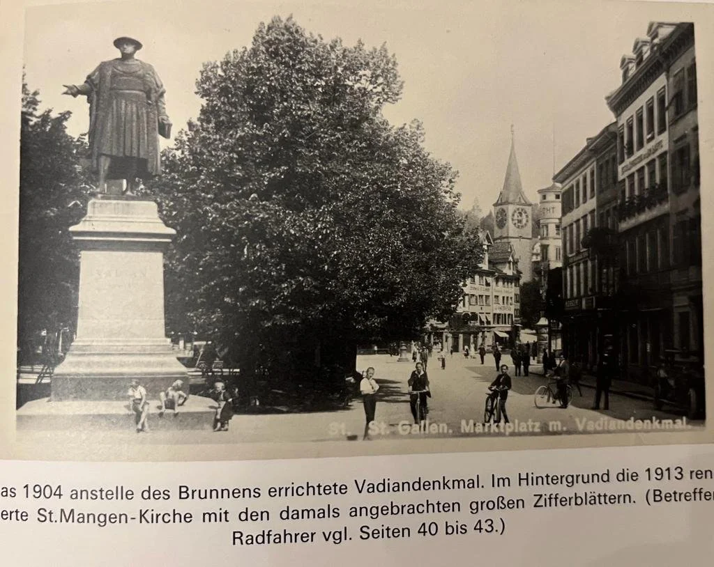 Historische Aufnahme des Marktplatzes: Wo früher der Brunnen stand, ist heute das Vadiandenkmal.